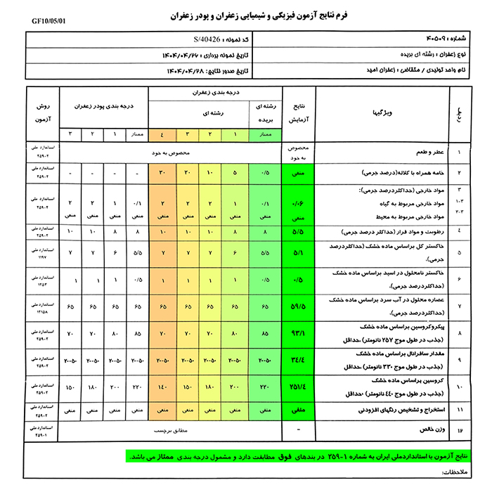 درجه خلوص زعفران